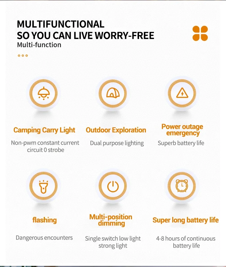 🌟 What is it - Meet the ultimate Dimmable Rechargeable Camping Lantern, designed to brighten your outdoor experiences. With multiple lighting modes and a compact design, it’s perfect for camping, hiking, or emergency situations.